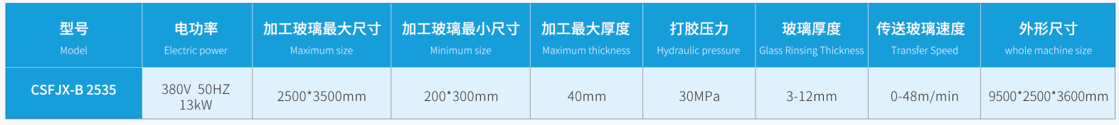 Synchronous belt transmission system accurately , ensure the smooth operation and no pollution of glass;Automatic alarm device of glue unique